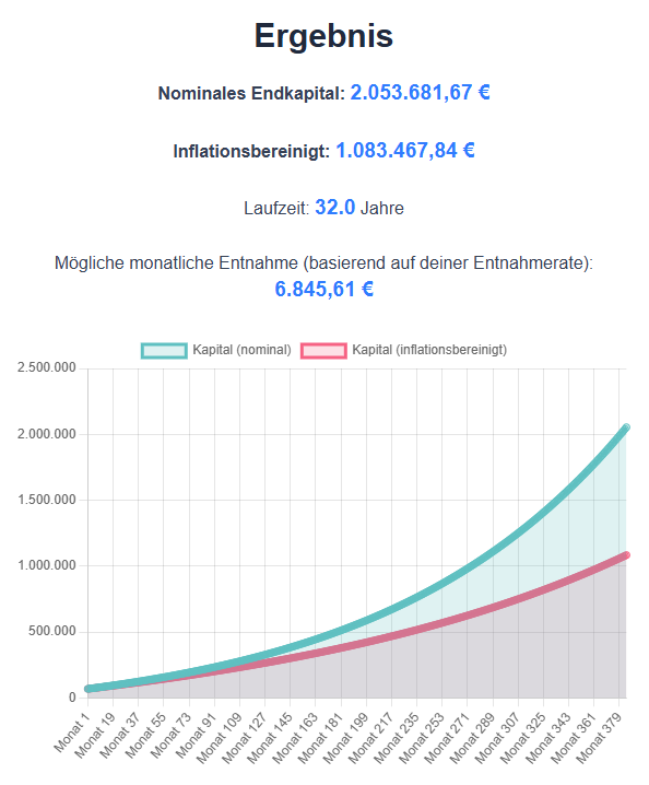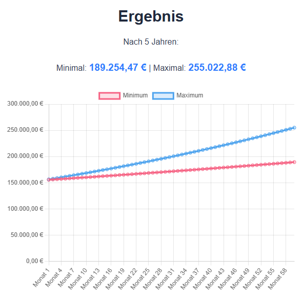 Finde heraus, wie viel Kapital du bis zu deinem Renteneintritt ansparen könntest. Der Rechner berücksichtigt dein aktuelles Alter, monatliche Sparrate und erwartete Rendite, sodass du eine solide Prognose deiner Altersvorsorge erhältst.